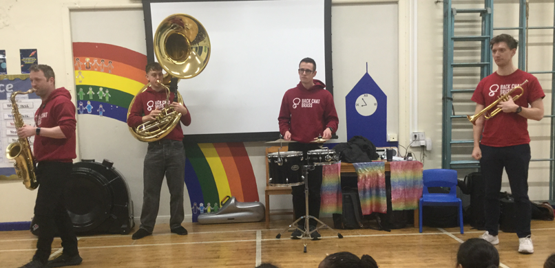 Recently, the wonderful Back Chat Brass came in to perform for us. We helped them to compose a funny song and they played some fantastic songs, including the hit 'Golden' from lots of our children's favourite film!